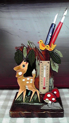 昭和30年代の状差し。木製です。バンビがキュート。 手作りっぽいワンちゃん。目がコロコロ動きます。 縦13 横16 奥3.5cm ¥2500sold バンビのペン立て。縦15 横10・5 奥7.5cm sold