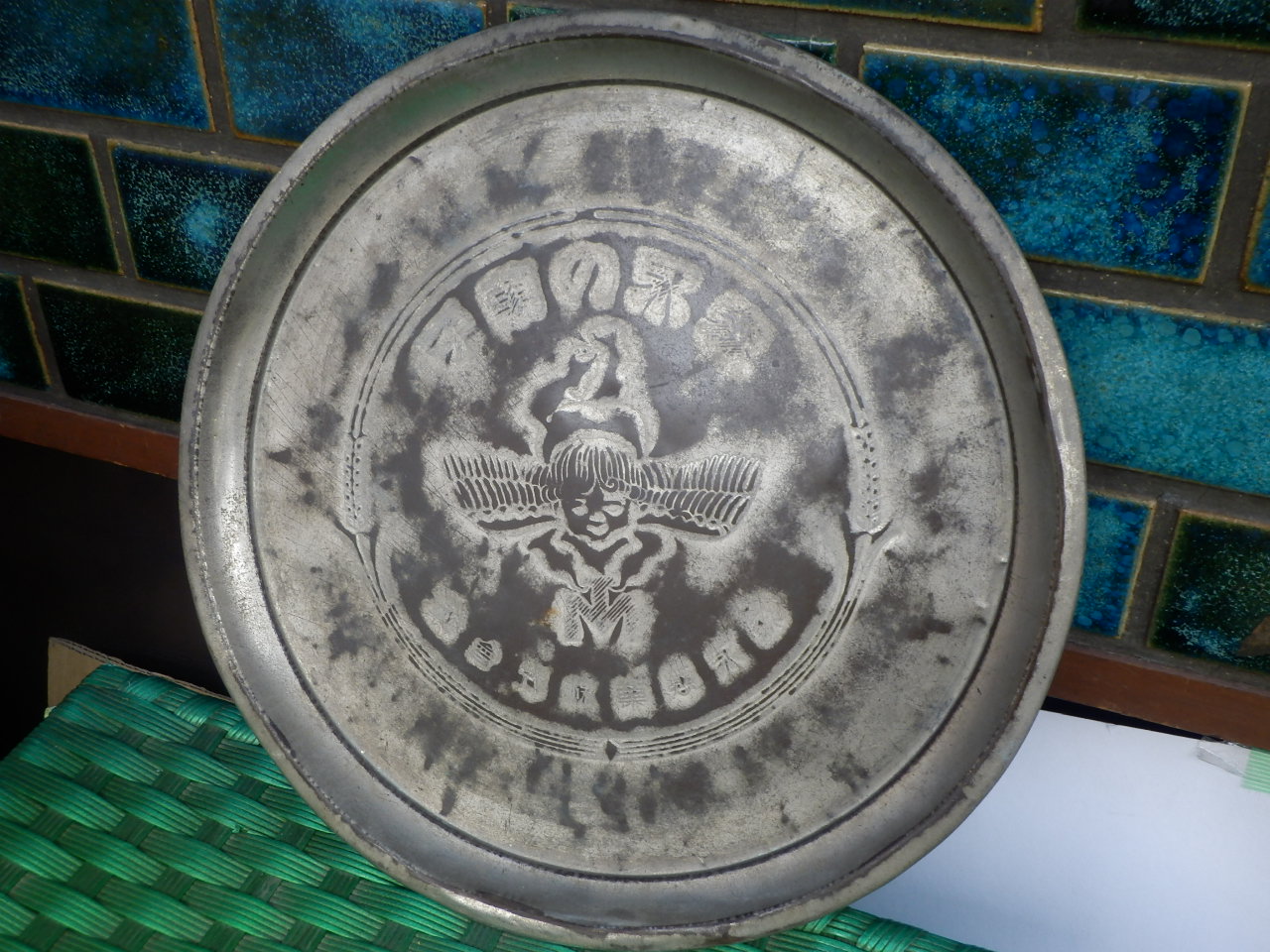 トレイ(J-254)¥2500 sold 直径29.8cm 金属製 子菓の永森・社會式株菓製永森 と書かれています。