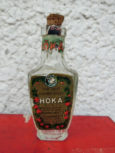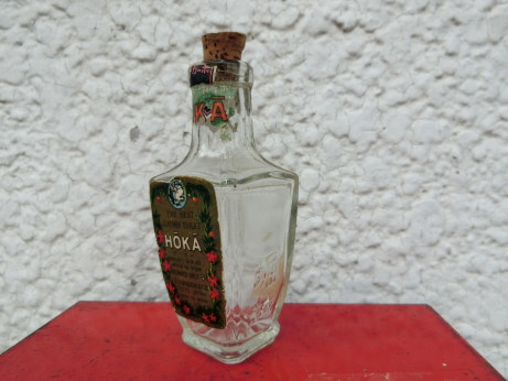 裏・桃谷順天堂の「桃とトンボのマーク」 ホーカー(K-105)¥3000 高9.5cm(瓶 上まで) 側面には「ホーカー液」「堀越」のエンボス