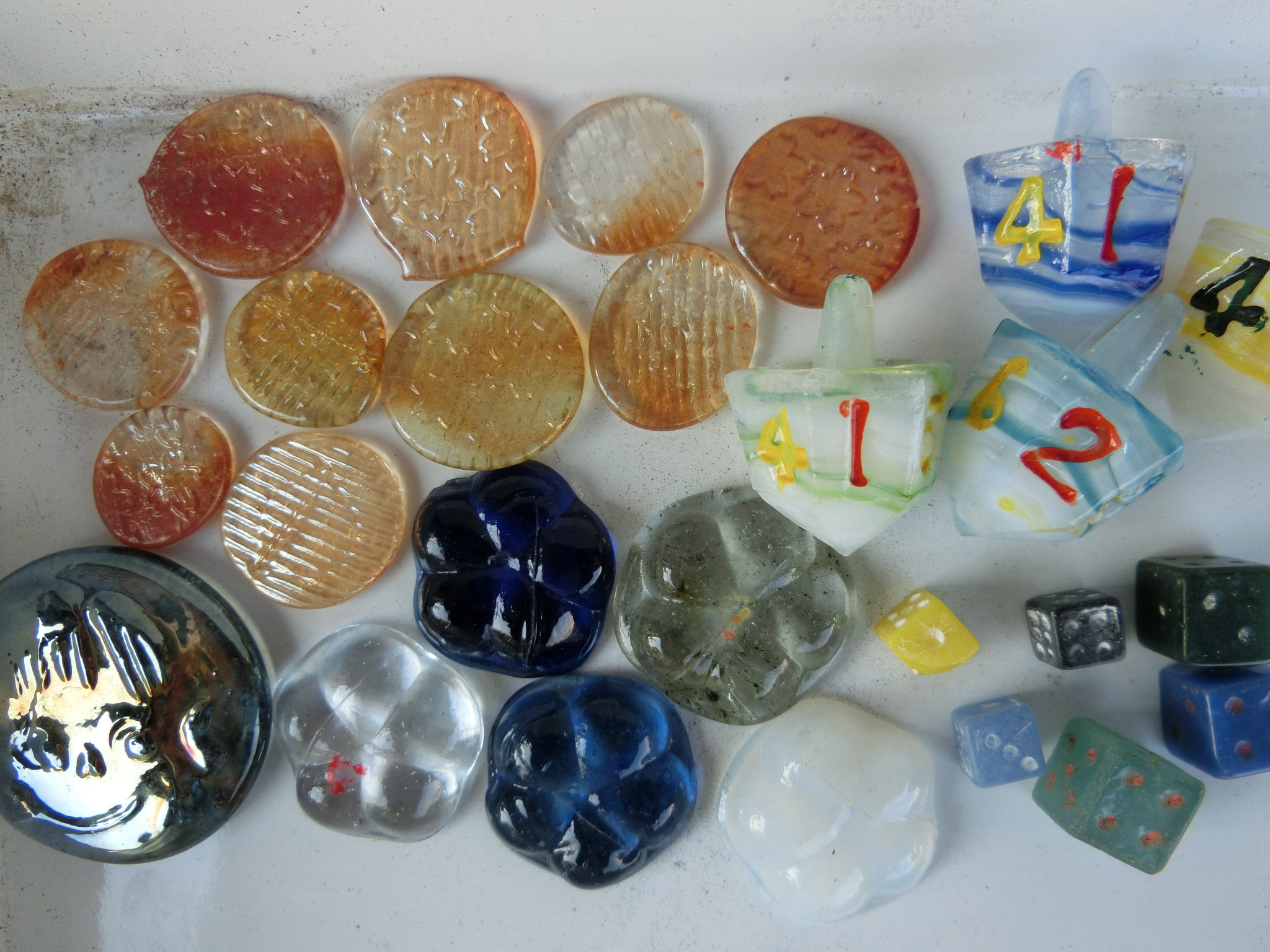 ガラスのコマ・左から 緑(G-421)水色(G-422)sold黄(G-423)sold青(G-424)sold