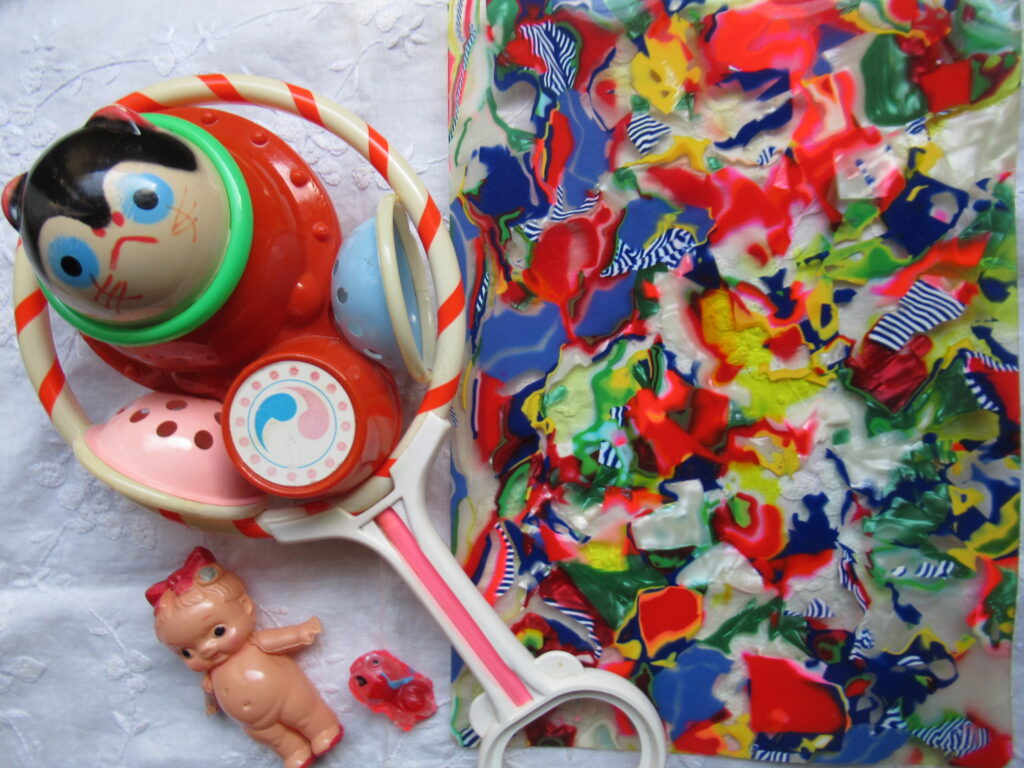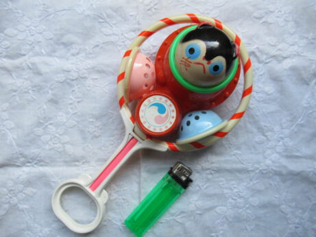 鉛筆キャップ6個(CC-481)¥1000 3.5cm 女の子(CC-479)¥1800 sold 高6.8cm 金魚(CC-480)¥1000 3cm ガラガラ (CC-478)¥4500 縦23cm 淵に少し凹みあり。 下敷き(CC-477)¥1800 15×21.5cm
