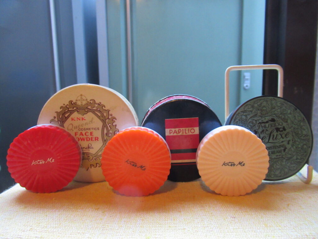 化粧品いろいろ キスミー頬紅3点 未使用 各¥1500 直5cm 赤(K-469) 白(K-468) オレンヂ(K-467) 粉白粉2点 空箱 カネボウ(K-466)¥1800 直8.2cm パピリオ(K-465)¥1800 直7cm 資生堂・ドルックス(K-464)¥3500 直径7 高4cm