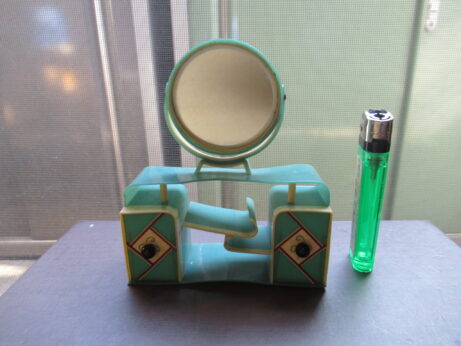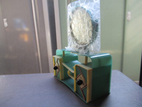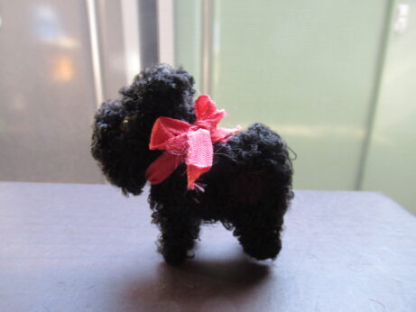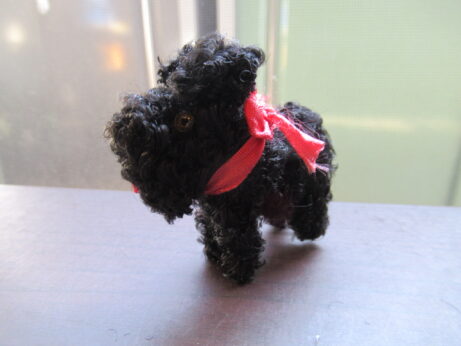 女の子(N-1205)¥3800 高14cm 台、少し欠けています。 後ろ姿 黒いテリア(N-1204)¥3800 横6.5 高6cm セルロイドの鏡台(N-1203)¥6500 横9.5 高11.5 奥行き3.7cm 女の子シール・中原淳一(N-1202)¥1000 箱・4×4.5cm 箱、少し痛んでいます。