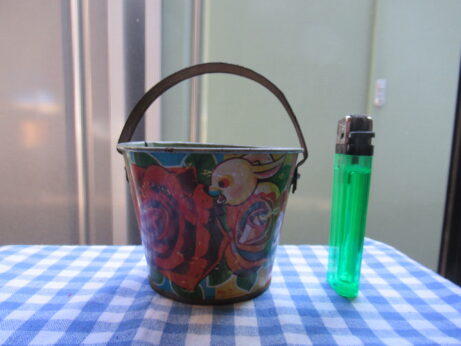 左・モールサンタ(Z-700)¥1500 10cm 右・女の子(Z-699)¥1000 7.5cm 右・女の子 左足、短くなっています。 こけし(Z-698)¥1000 高6.5cm おもちゃ・金属(Z-697)¥1500 横7cm バケツ(Z-696)¥1500 口径8.5 高6.5cm 下のところに「MADE IN JAPAN」と書かれています。 アルミのお弁当箱(Z-695)¥1800 9.5×13.5cm