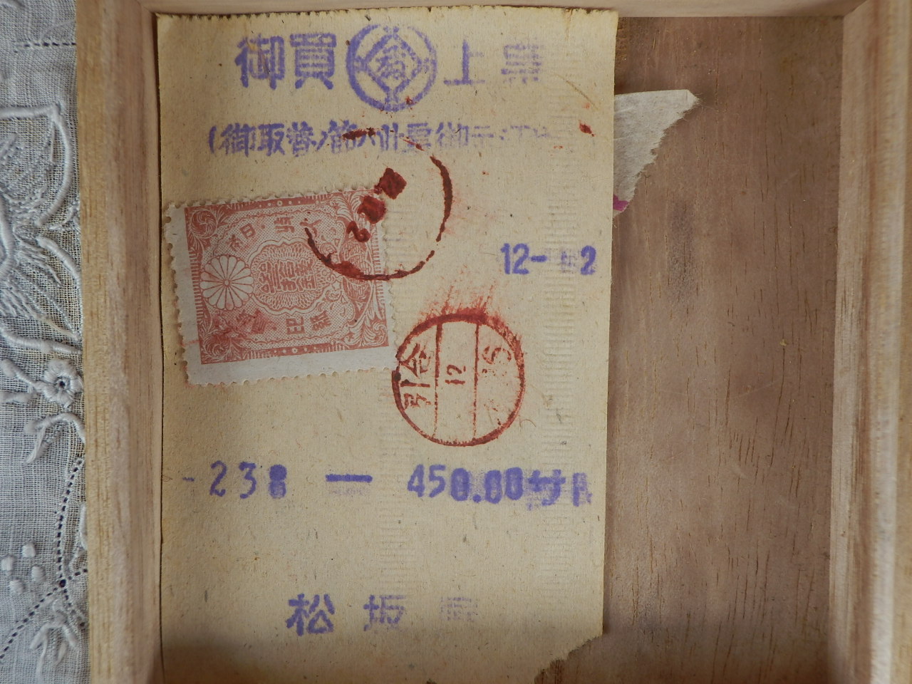 箱の中には 松坂屋のレシート