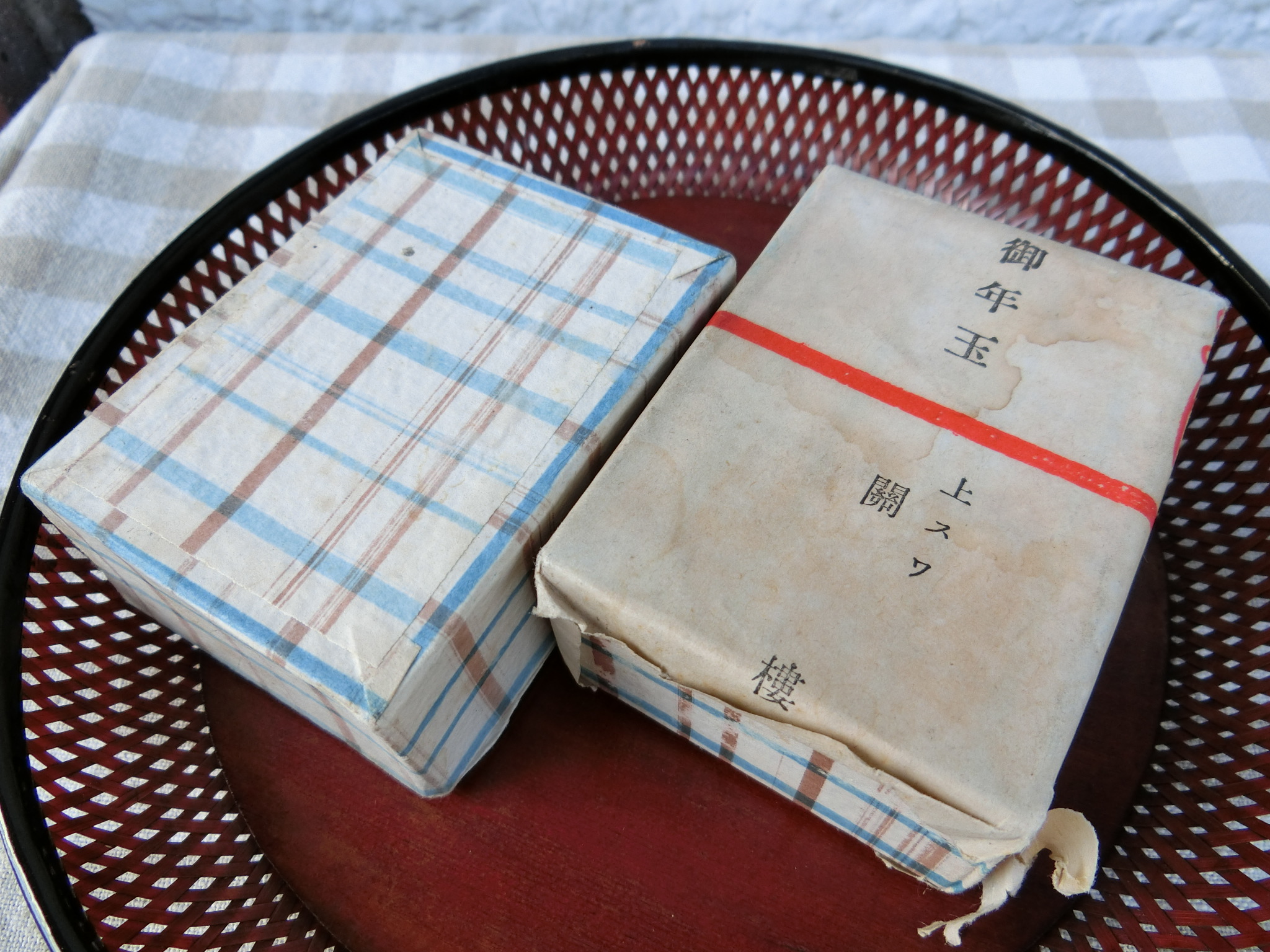 箱・横5.2 縦7 高3.2cm 「お年玉」と書かれています。お正月に配ったのでしょうね。