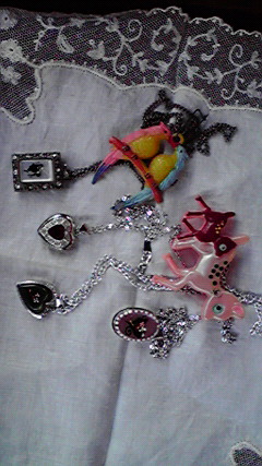 流行っていました! 女の人の横顔 ネックレス左 AC-3sold 右AC-4 各¥1500 ロッケット 左AC-5 ¥2500sold角型 右AC-6 ¥2000sold ハート型