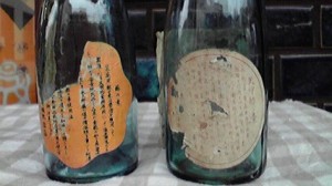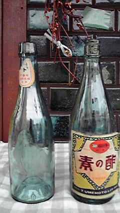 「酢の素」の瓶。左(SM-1)¥1000 右(SM-2)¥1500 2本とも 高18 底 直径5cm位。一輪差しに丁度よさそう。