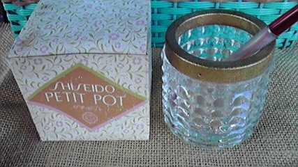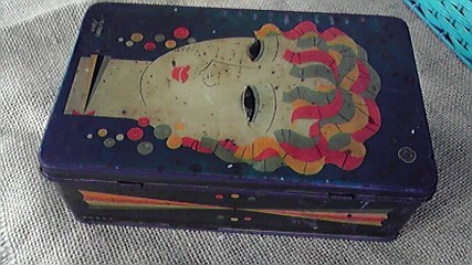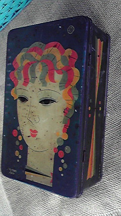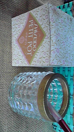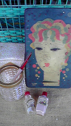 化粧用ガラス入れ物(S-3)¥1800sold 未使用 高6.5cm 説明書 石鹸の缶(S-4)¥5500sold 縦17.5 横11 深6cm (山名文夫のデザイン・濃い緑色です)