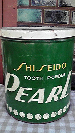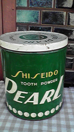 資生堂 パール歯磨きの缶 (SP-1)¥3500 高24 直径24cm 蓋には大きな椿のマーク 中 キレイです 商品のご注文はメールでお願いします。 注文方法は、お買い物の仕方 をご覧ください。