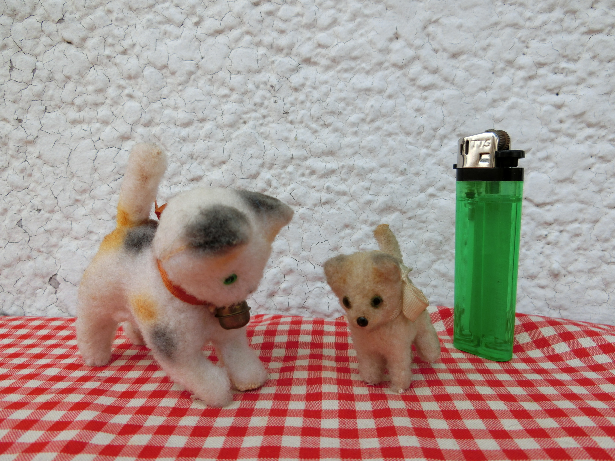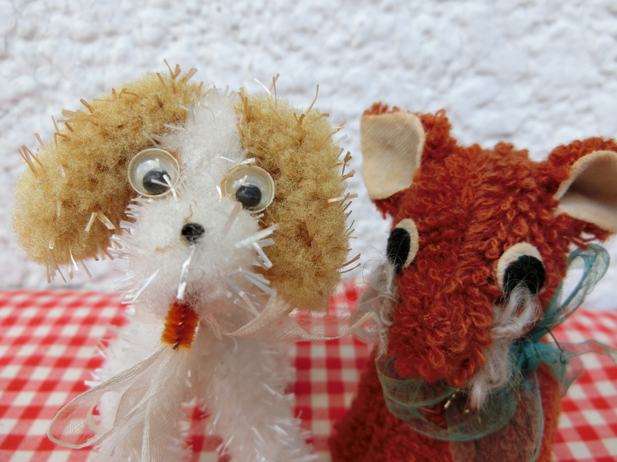 左・白いモール犬(NU-141)¥1500 sold 横7 高9cm 右・茶色い犬(NU-142)¥1500 横6 高8.5cm