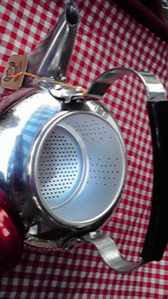 デッドストックのアルミ製急須。小さくて可愛いサイズ。(AR-1)sold 高さ(蓋まで)11cm、底の大きさ・直径11.5cm チキンソースの景品? 茶漉しが付いています すずめ印 7個あります