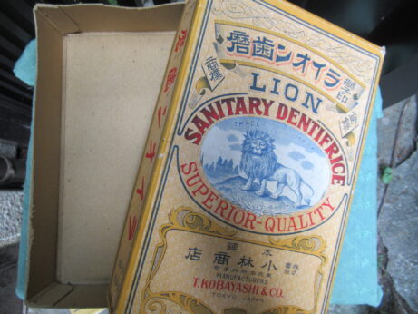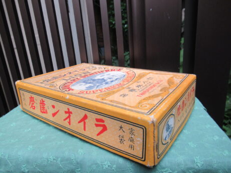 左・ライオン歯磨(Z-453)¥1000sold 空缶 右・クラブ半煉歯磨(Z-454)¥1800sold 未開封・缶 左・直7.2cm 右・直7cm クラブ石鹸(Z-452)¥1800 sold 9.5×18.2cm 高4cm 花王石鹸(Z-451)¥1800 sold 8.2×17.5cm 高3.5cm 1箇所、破けています。 ライオン歯磨き(Z-450)¥3000 16×24.5cm 高5.3cm