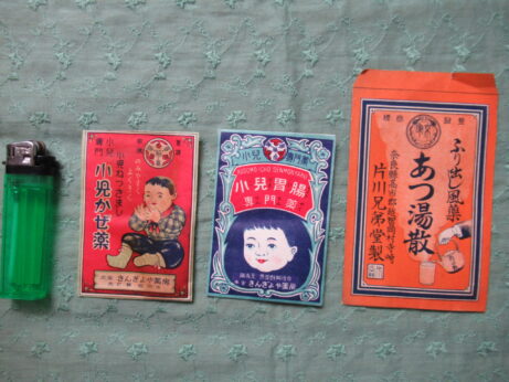 「あつ湯散」は袋のみ。左・2つ6×9cm